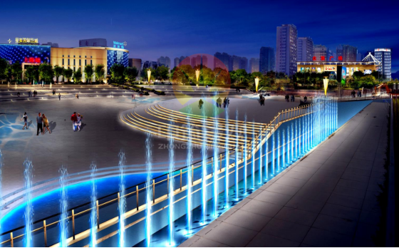 市民廣場(chǎng)(廣場(chǎng)采用暖色為主,突顯其大氣、莊重,打造了市民夜游好去處,并具觀賞性。分為平時(shí)模式及假日模式)