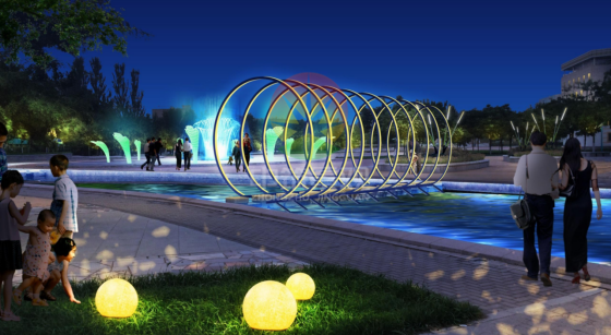 龍形谷景觀帶(冷暖色與RGB彩色的搭配,完整表達(dá)景觀帶的結(jié)構(gòu)特征,融合噴泉的律動(dòng),是休息拍照的好地方。)