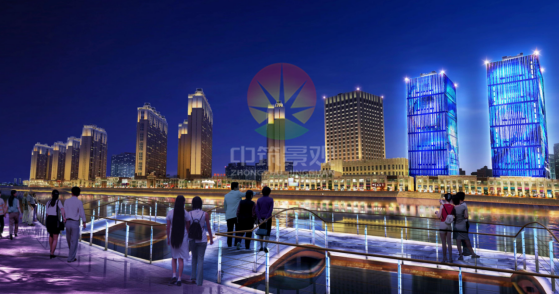 河岸夜景(設(shè)計(jì)多種光色變幻強(qiáng)調(diào)河岸的精巧構(gòu)造,光色布局均勻流暢、細(xì)節(jié)過渡柔和,以靈動(dòng)的光影筆觸描繪河岸結(jié)構(gòu),分為平時(shí)模式及節(jié)日模式)