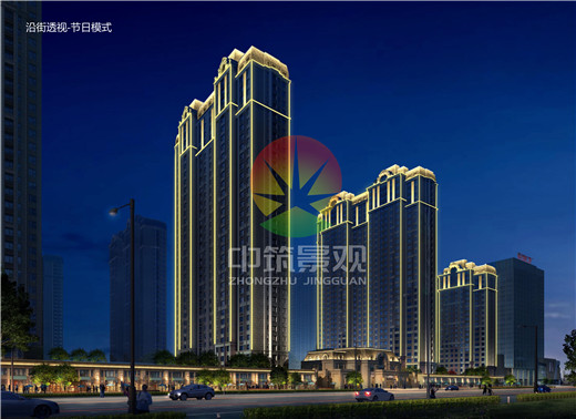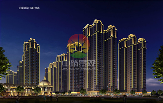 (沿街)以商業、住宅等業態形式組合而形成的高檔次多業態智能化建筑,設計應充分注意這一基本思路,通過光的強弱變化和色彩組合,使建筑物在夜幕降臨后淋漓盡致的表現出特有的風格。充分利用各種燈光的光學屬性,塑造奪目而不眩目、簡約而不簡單、華麗而不華眾的現代化標志性建筑形態。