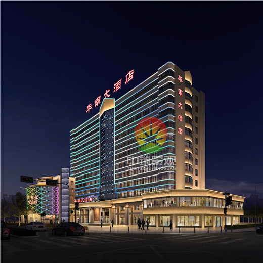 項目概況:揭陽華南大酒店是一家依照高星級酒店標準建造的集住宿、娛樂、餐飲、會議為一體的商務娛樂型酒店。2017年,酒店聘請中筑景觀進行全面重新設計、裝飾,使酒店在高品質的基礎上更添溫馨、儒雅、大氣的藝術品位,旨在從品質-管理-服務上成就華南大酒店高檔酒店的水準,全力打造令人矚目的歐陸格調和頂級娛樂風情,讓賓客在華南大酒店盡情領略和享受到異域風情和尊貴地位。中筑在2017年3月承接了景區亮化工程服務,經過6個月的設計及施工,2017年9月底完成驗收。